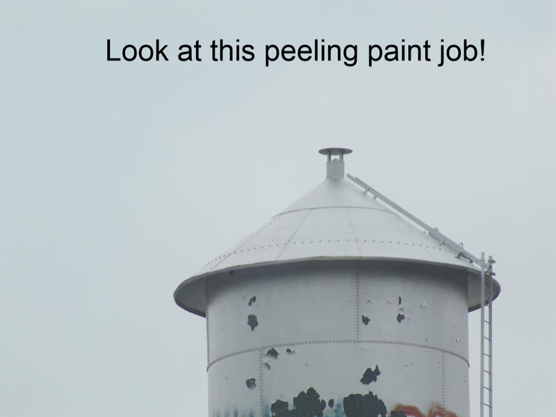 Now they say that the tank was not adequately prepared; that to get good adhesion the whole thing needs to be sandblasted; they said that would cost more than $80,000! Well, THEY are the professionals, not us! So if they didn't think their paint job was going to be adequate, WHY DID THEY PAINT IT? We relied on them as professionals, to tell us how to paint the tank. They quoted it and performed a paint job, but obviously they didn't paint it well enough to last even the first year!
